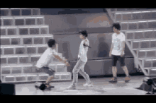 Arashi members Aiba Masaki and Sakurai Sho share a funny, affectionate moment on stage during a performance.