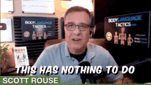 Scott Rouse speaking about body language tactics, with captions 'THIS HAS NOTHING TO DO' and 'WE ARE TALKING ABOUT'.
