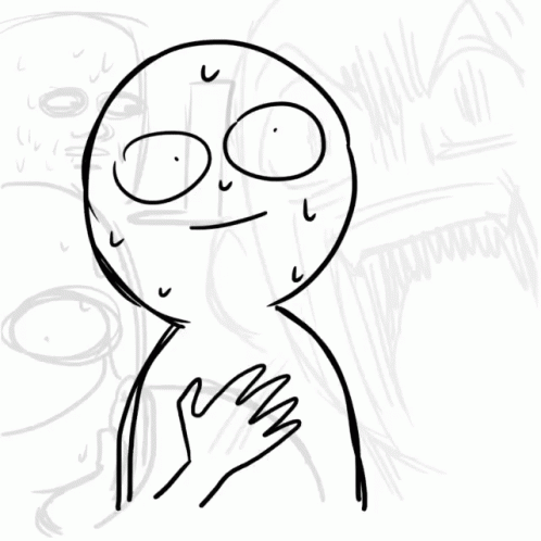 A black and white drawing of a person with a surprised and internally screaming expression.