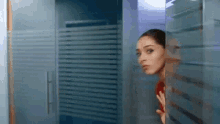 Cemre Baysel and Burak Çelik from Senden Daha Güzel peek from behind a frosted glass door.