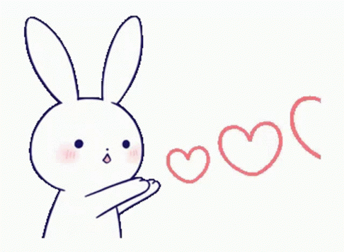 Cute animated rabbit blowing out multiple pink hearts, symbolizing sending love.