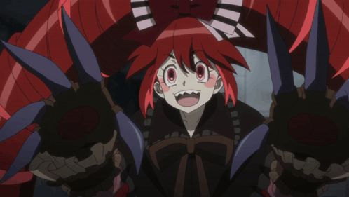 a girl with red hair is surrounded by a giant spider