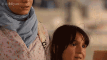 A woman in a hijab and a young girl from Jack Ryan appear serious and shocked, looking intently at something.