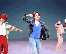 Seungkwan from K-pop group Seventeen performs a dynamic dance routine in a studio, showcasing his energetic moves.