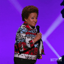 Comedian Wanda Sykes on stage, holding a microphone, with the text 'SHE DIDN'T GET IT' displayed.