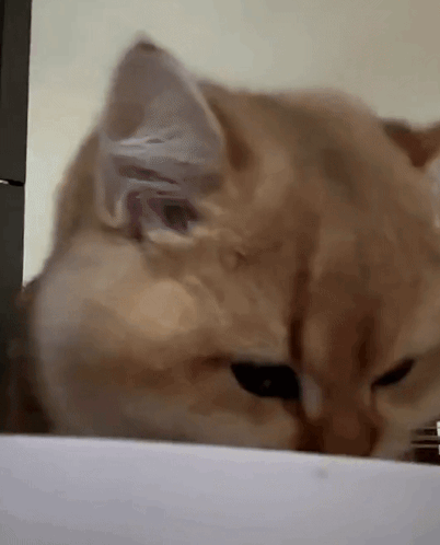 A British Shorthair cat displays a hilariously shocked face, eyes wide and mouth open, reacting with a crunch.