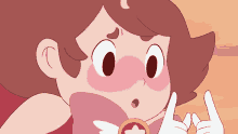 Bee from Bee and Puppycat appears shy and embarrassed, with blushing cheeks and a hesitant hand gesture.