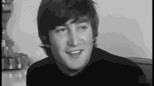 John Lennon gives a classic side eye expression in this black and white archival footage.