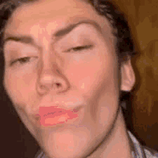Skylar White Yo makes a funny 'rizz face' with closed eyes and pursed lips, enhanced with a glitch effect.