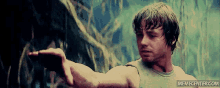 A man in a tank top points intensely with a serious expression, featuring a memecenter.com watermark.