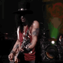 Slash of Guns N' Roses delivers an electrifying live guitar performance on stage.
