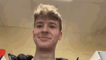 Adam Beales makes a funny, sneaky smile, looking directly at the camera.