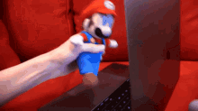 SML Mario plush toy is used to close a laptop, signaling 'that's enough internet for today'.