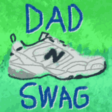 Illustration of a New Balance sneaker with 'DAD SWAG' text, representing classic dad shoes.