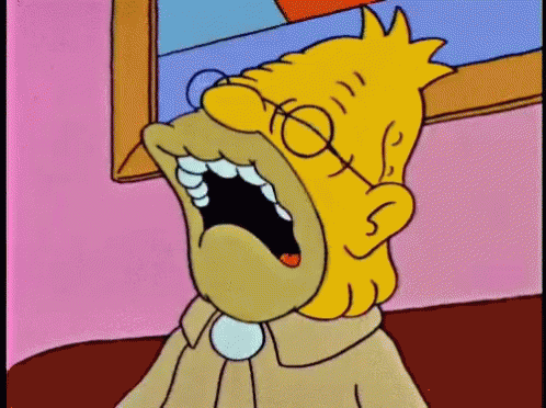 Grampa Simpson from The Simpsons is seen with his mouth open, appearing to snore or yawn.
