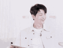 Song Joong-ki laughing heartily while holding a paper, showcasing his joyful expression.