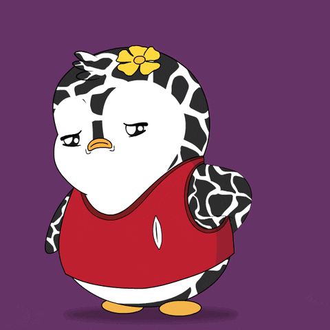A cute Pudgy Penguin holds up a sign that reads 'SORRY', expressing an apology with a sad face.