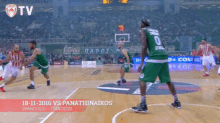 Basketball action featuring Spanoulis and Printezis during the Olympiacos vs Panathinaikos game on 18-11-2016.