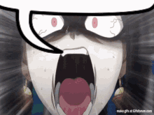 Celestia Ludenberg from Danganronpa screams in anger with an empty speech bubble above her head.