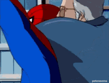 Spider-Man and Stan Lee share an animated moment in this classic cartoon scene.