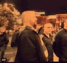 Srki Srky, also known as Srdjan Babovic, is seen among a group of men standing in a crowd at night.