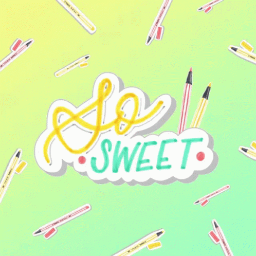 Animated graphic featuring 'So SWEET' text surrounded by colorful Stabilo pens, perfect for stationery lovers.