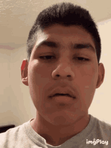 A young man looks directly at the camera with a straight face, capturing a close-up selfie.