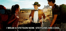 Matt Smith as the Eleventh Doctor proudly declares his new Stetson is cool in a desert landscape.