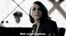 Stormfront from The Boys delivers a sarcastic 'Well, congratulations' while sitting indoors.