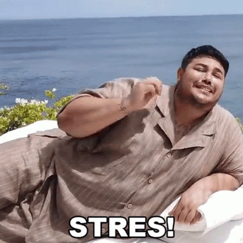 Ivan Gunawan lies by the sea, expressing 'STRES!' (stress) and feeling the burden of too much pressure.