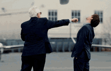 Logan Roy and Roman Roy share a moment, with Logan patting Roman on the back before a hug in HBO's Succession.