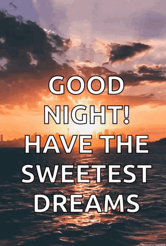 A beautiful sunset scene with a 'Good Night! Have the Sweetest Dreams' message, featuring Sunset Shimmer.