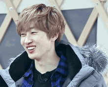 Super Junior's Eunhyuk shares an adorable, infectious smile while wearing a fur-hooded jacket.
