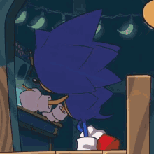 Classic Sonic The Hedgehog looks annoyed while a banana glows in Super Monkey Ball Banana Mania.