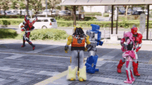 The Kikai Sentai Zenkaiger team, including Gaon, Hakaiser, Juran, Magine, and Vroom, on a city street.