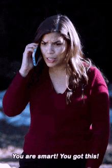 Amy Sosa (America Ferrera) on the phone, with an encouraging 'You are smart! You got this!' message displayed.