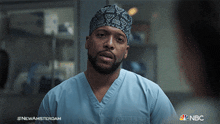 Dr. Floyd Reynolds, played by Jocko Sims, shows a surprised expression in a scene from New Amsterdam.