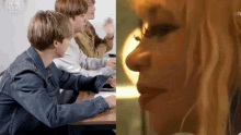 Susy Diaz reacts on one side, while Jimin from BTS covers his face in a split-screen video.