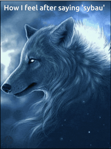 A majestic wolf image with the text 'How I feel after saying sybau', conveying a powerful emotion.