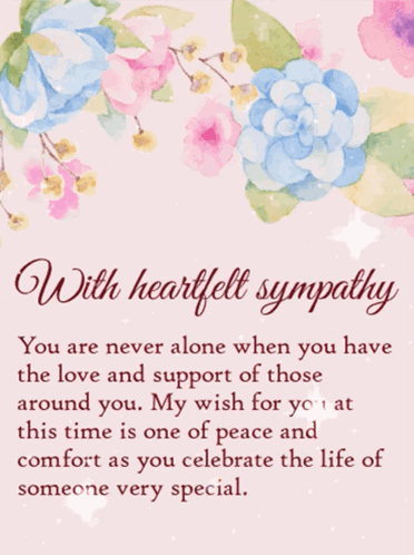 A heartfelt sympathy card featuring watercolor flowers and a comforting message of peace and support.