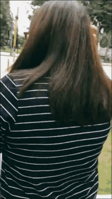 Tabita Bits looks back with a confused expression while walking in a striped shirt.