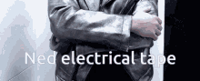 A person in a silver leather jacket demonstrates electrical tape, with 'Ned electrical tape' visible.