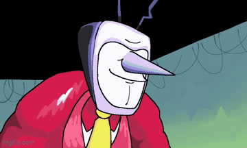 Animated character Tenna Spamton, with a long nose and TV head, appears in a red jacket and yellow tie, with a 'TV TIME!' screen.