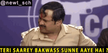 Happu Singh, in police uniform, delivers his iconic 'Teri Bakwass Sunne Aaye Hai Kya' dialogue.