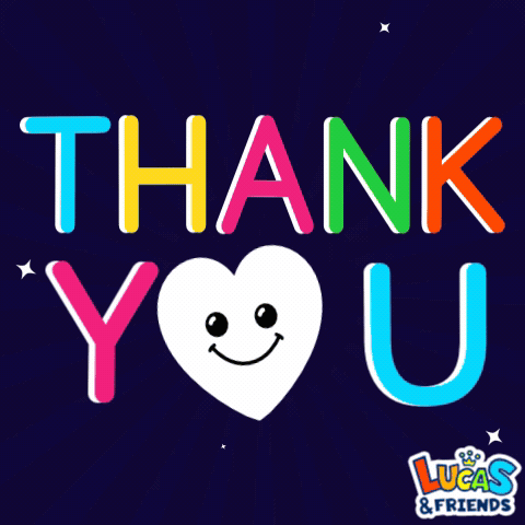 An animated 'Thank You' message featuring a smiling heart character and the Lucas & Friends logo.