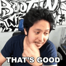 Shin Boo Ponferrada reacts positively, saying 'That's Good' in front of a graffiti wall.