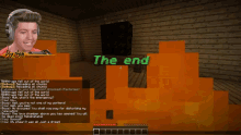Preston Playz reacts as lava rises in Minecraft, reaching 'The End' of a challenge, only to find it was a dream.