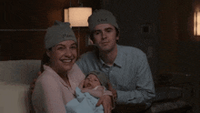 Shaun Murphy (Freddie Highmore) and Lea Dilallo (Paige Spara) with their newborn baby Steven Aaron Murphy in a heartwarming family photo.