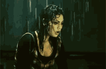 Phoebe Tonkin as Hayley Marshall from The Originals stands in the rain, looking distressed.