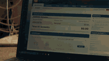 A character from Tulsa King reacts angrily to seeing a zero bank balance on his laptop, throwing it in frustration.